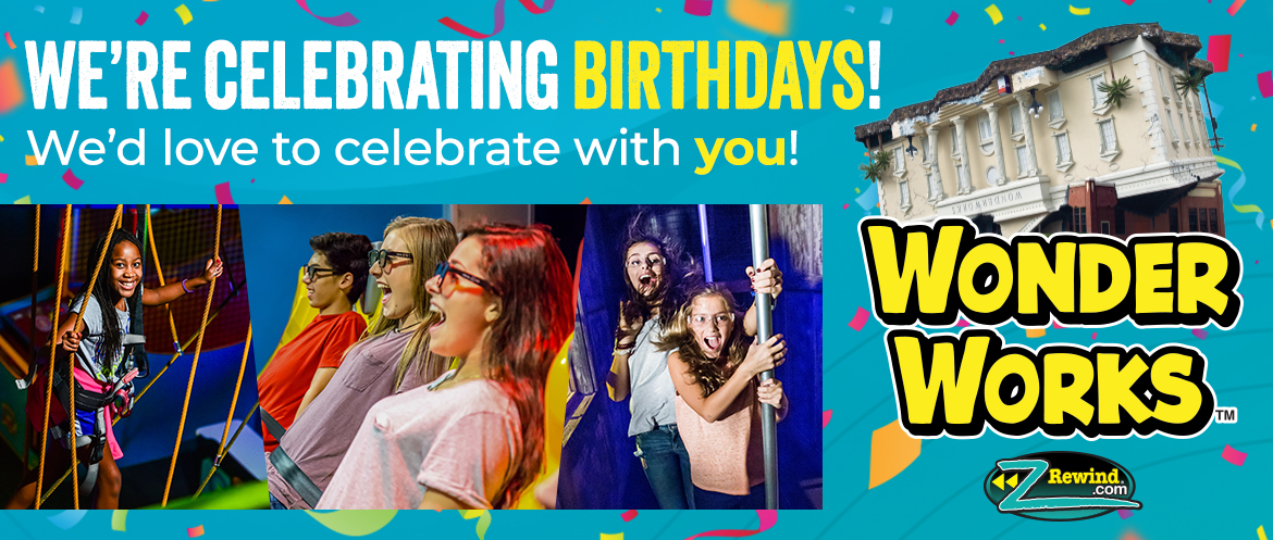 WonderWorks is celebrating birthdays! Your friends from ZRewind would like to send your family to celebrate with a family four-pack of tickets!